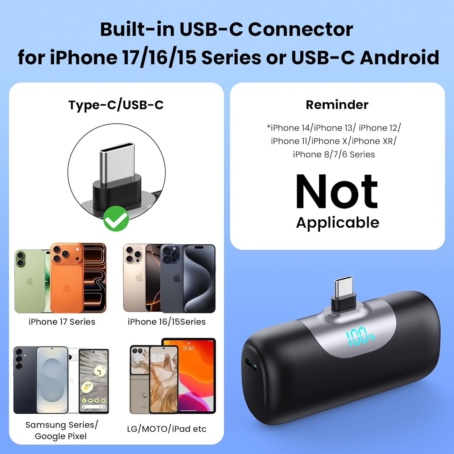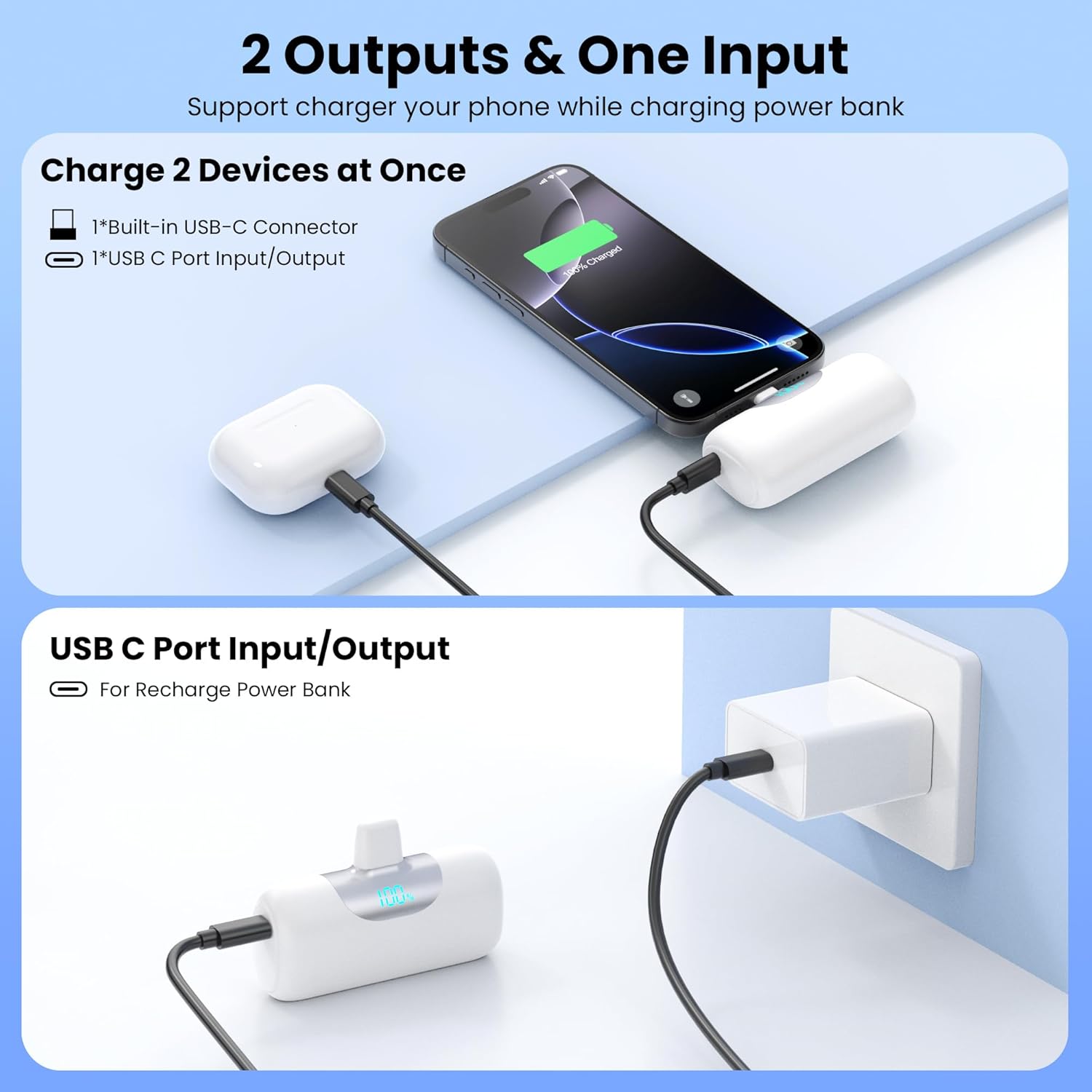 [2 Packs]Mini Portable Charger for iPhone 17/16, 5500mAh LCD Display USB C Power Bank,Fast Phone Charging Travel Pocket Size Battery Pack for iPhone 17/17 Pro/17 Pro Max/Air/16/15 Series,Android,etc