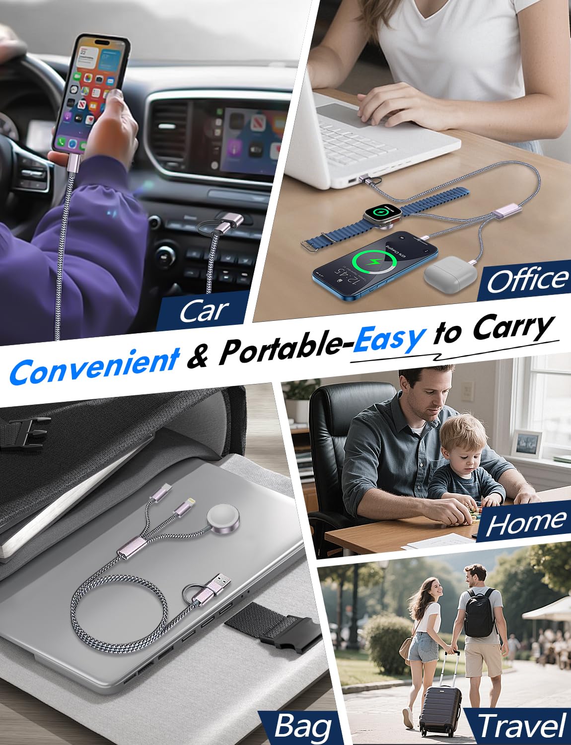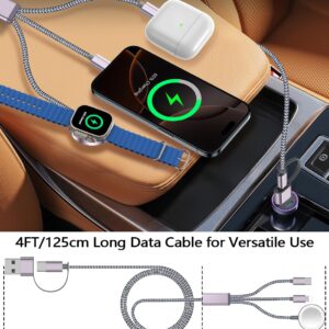 【Portable Travel Camping Essentials&Car accessories】This 1.25M/4ft 3 in 2 charging cable is convenient to carry around with lightweight and portable design.It fits seamlessly into travel vocation essentials like bags and suitcases so it is a perfect choice when going on holiday,business trip,travel,office,dorm life,apartment living, college campuses,and hiking adventures. Ideal for charging in car,Charge iPhone, iWatch, and USB A to C cable-compatible devices simultaneously—no adapters needed.Xbox Series X&S