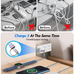 【3 in 2 Multi Charging Cable】Includes a 4ft 3 in 2 charging cable that features USB C/USB A input ports and three output ports: Type-C,and for apple watch charger.The multi charger cable is compatible with both USB C and USB A chargers, making it a versatile option for various devices(designed for iWatch Series 2-10,SE/Ultra models,compatible with iPhone 16-11 and newer models,and alos for iPads,Samsung Galaxy S25-21,Airpods,car charging,Xbox 360 Headset etc.)Note:Not for samsung watch!!!Xbox Series X&S