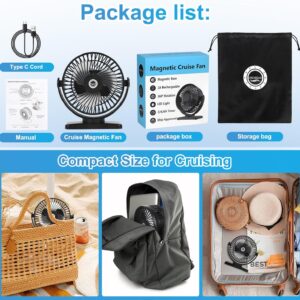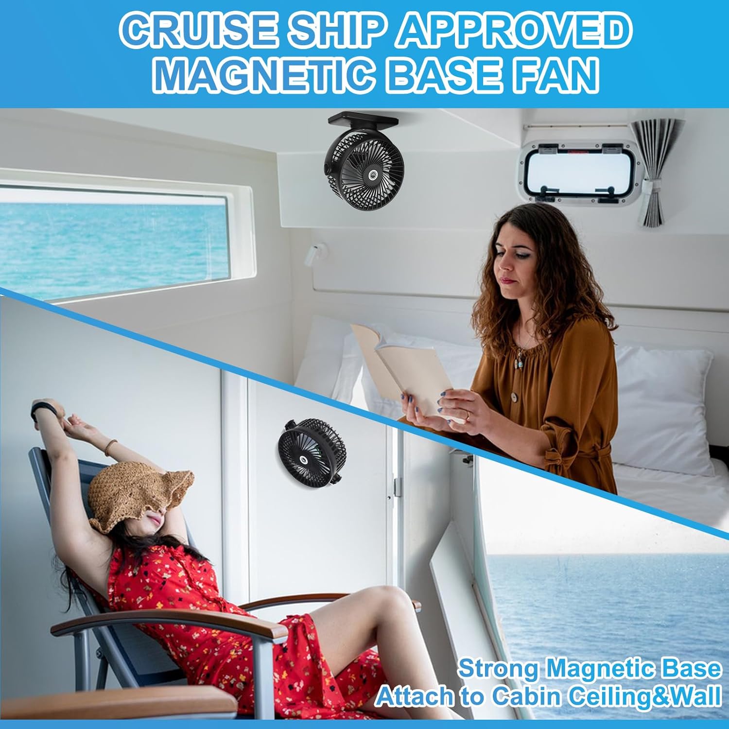 【Powerful Magnetic Base】: Enhanced heavy-duty magnet securely attaches to metal ceilings, walls, or bunk rails — stays steady even when the ship moves. Ideal cruise essential fan that frees up counter space in ship cabins.