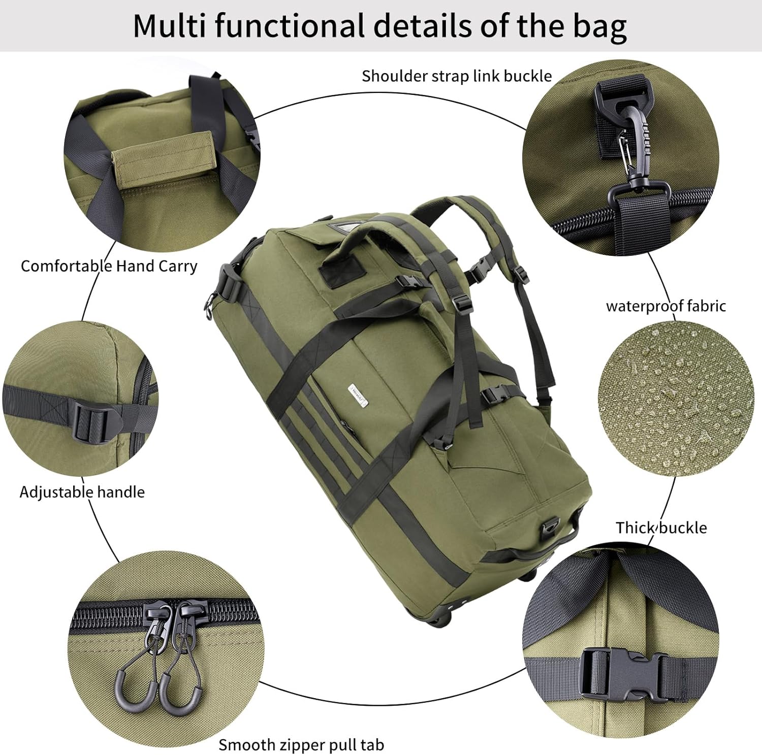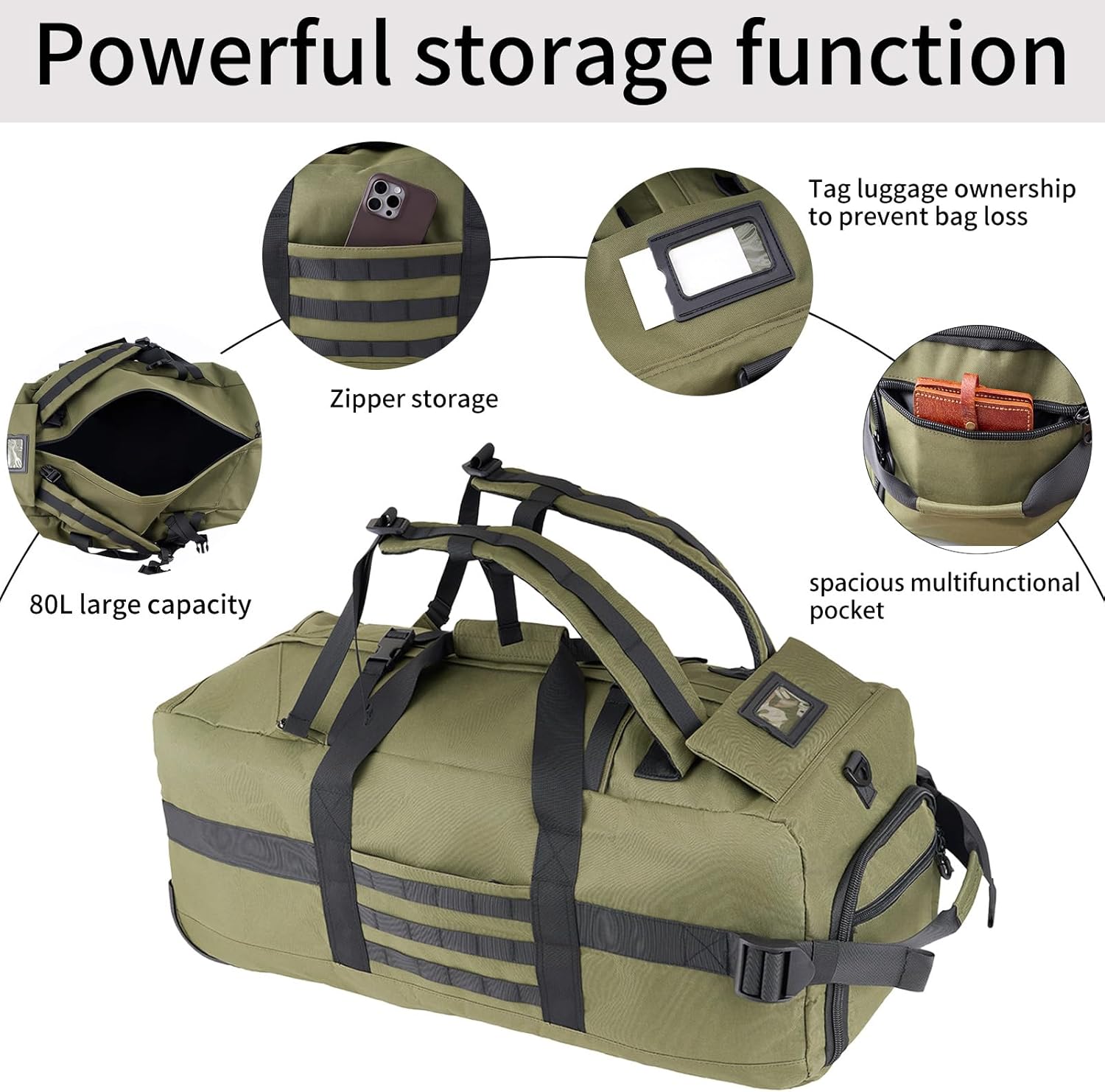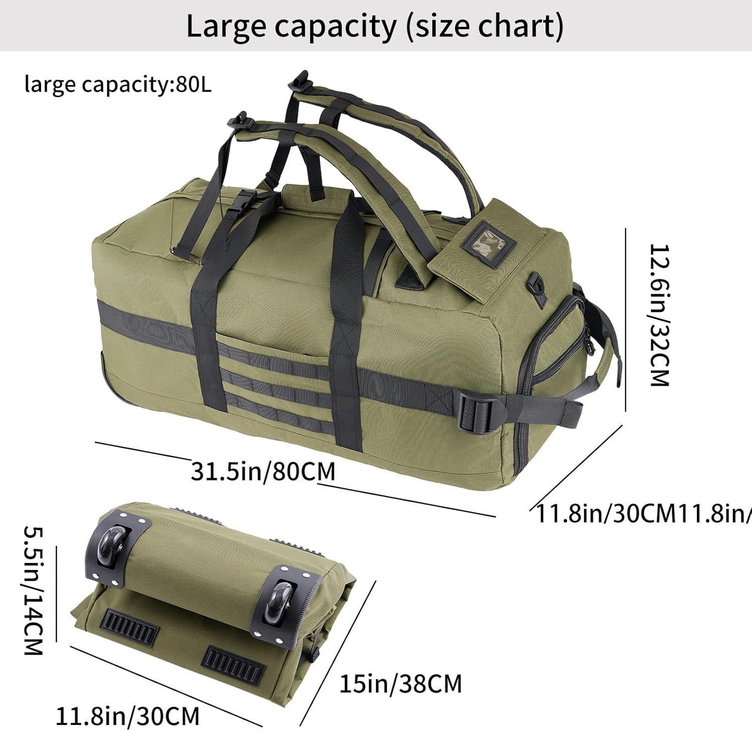 80L Rolling Duffel Bag with wheels,Travel Duffel Bag,Large Wheeled Travel Duffel Luggage with Rollers,Foldable Rolling Duffel Bag(Green(Adjustable handle))
