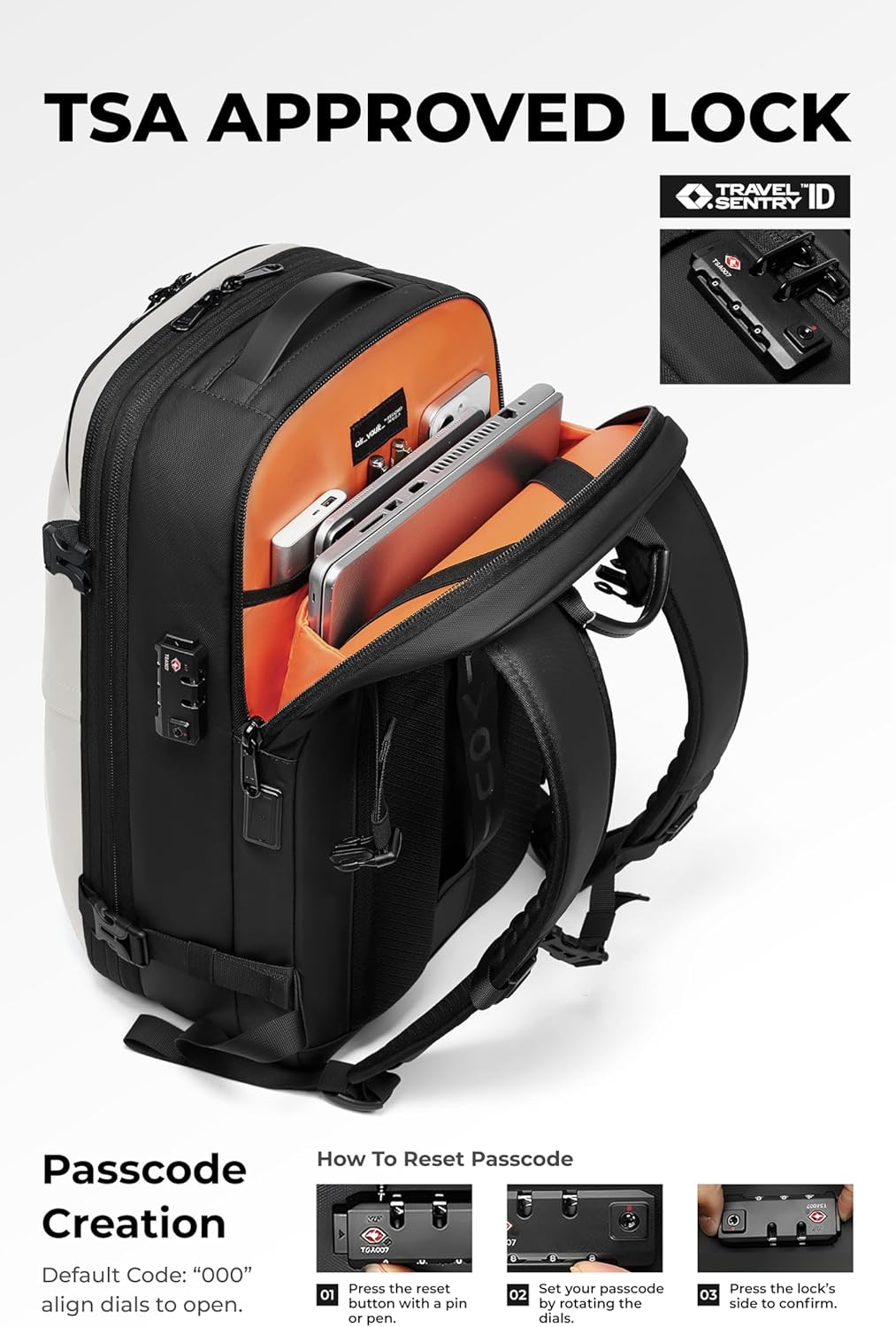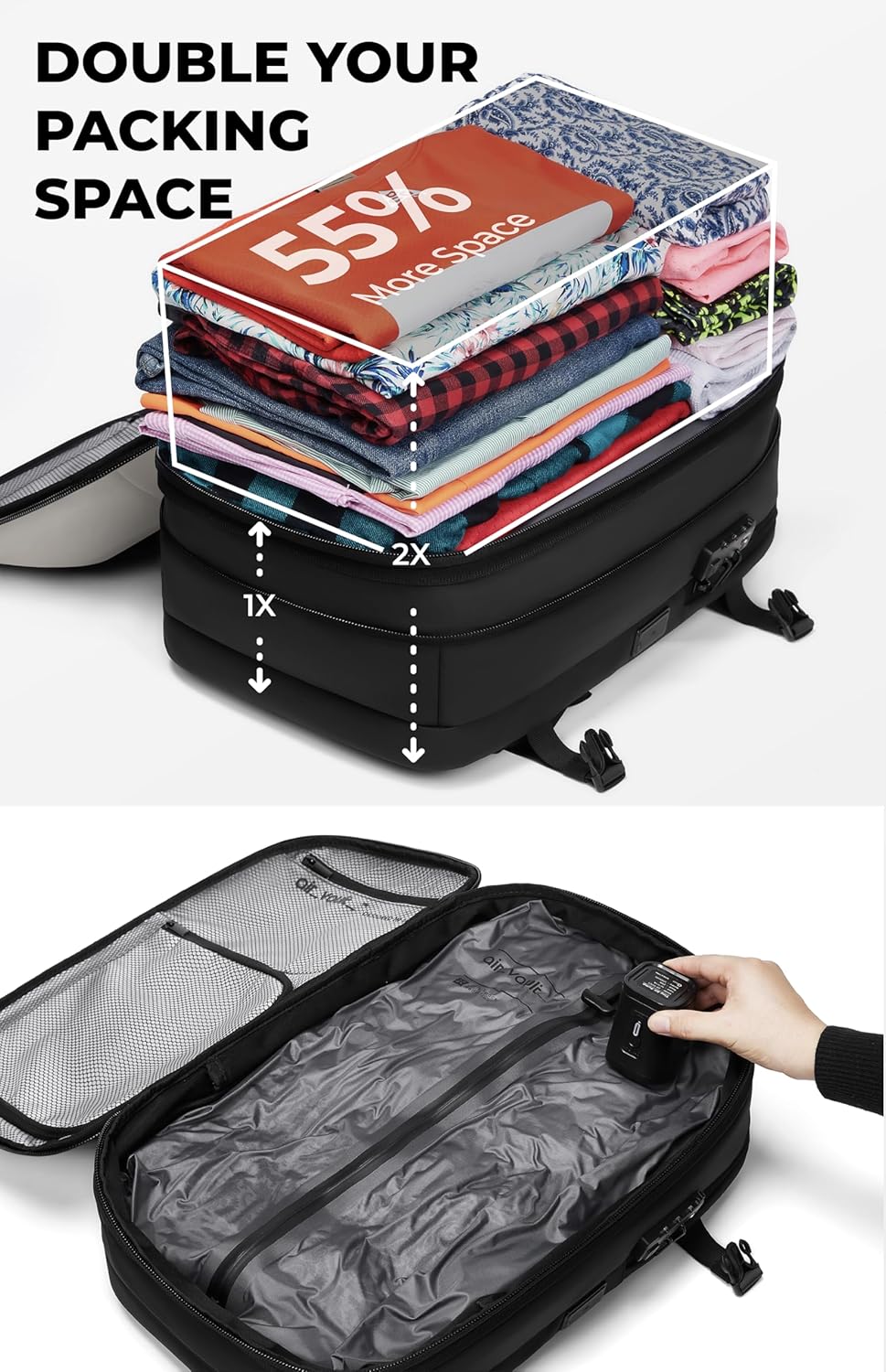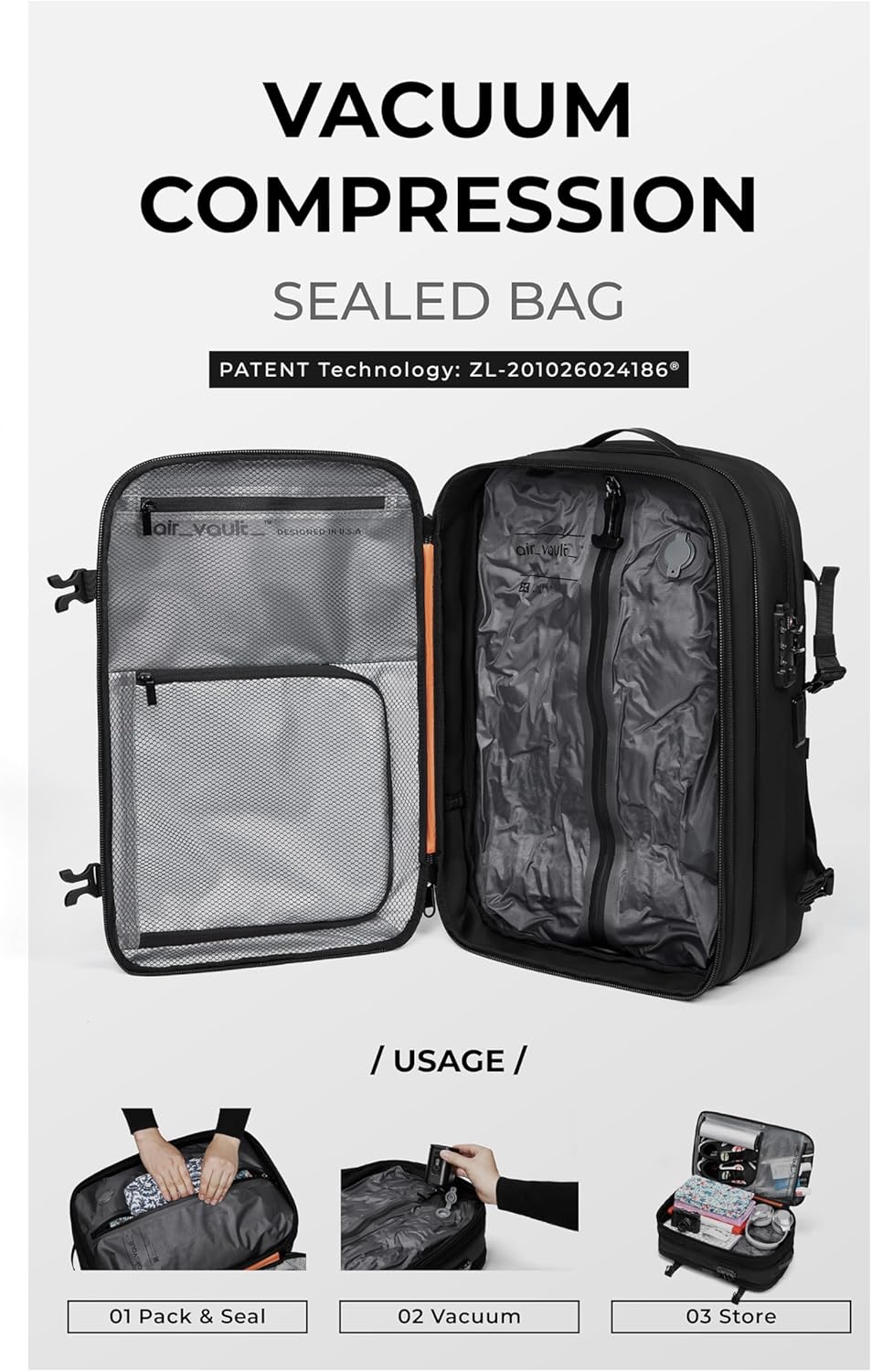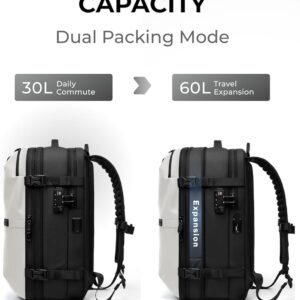 AirVault Vacuum Seal Travel Backpack 60L with Expandable HyperSeal Air Compression Vacuum System Water Resistant TSA Lock (Vacuum Pump Included, White, 60L)