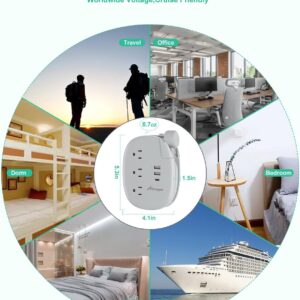 【Portable power strip with usb ports】3ft retractable power cord which makes it easy to storage,Compact Size(5.3*4.1*1.5In) and lightweight design to fit into luggage and bag,No need to take additional USB phone charger while traveling. The extension outlet also can be used in any indoor place with socket, Perfect solution for dorm room, bedside, behind the sofa,kitchen,office etc, No Surge protector,friendly for Cruise Ship(For Disney,Carnival,please check with cruise company,for Royal Caribbean,isn’t ok)
