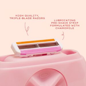 Contains two sharp triple-blade, razor cartridges for a clean, close shave. Each razor cartridge includes a lubricating pre-shave strip formulated with Chamomile and Olive Oil for a soft finish.