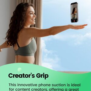 Hands-free Holder: Effortlessly stick your phone to flat, smooth, and glossy surfaces like mirrors or windows for hands-free selfies/videos. Stylish and portable, ideal for home, gym, on the go and other scenarios.
