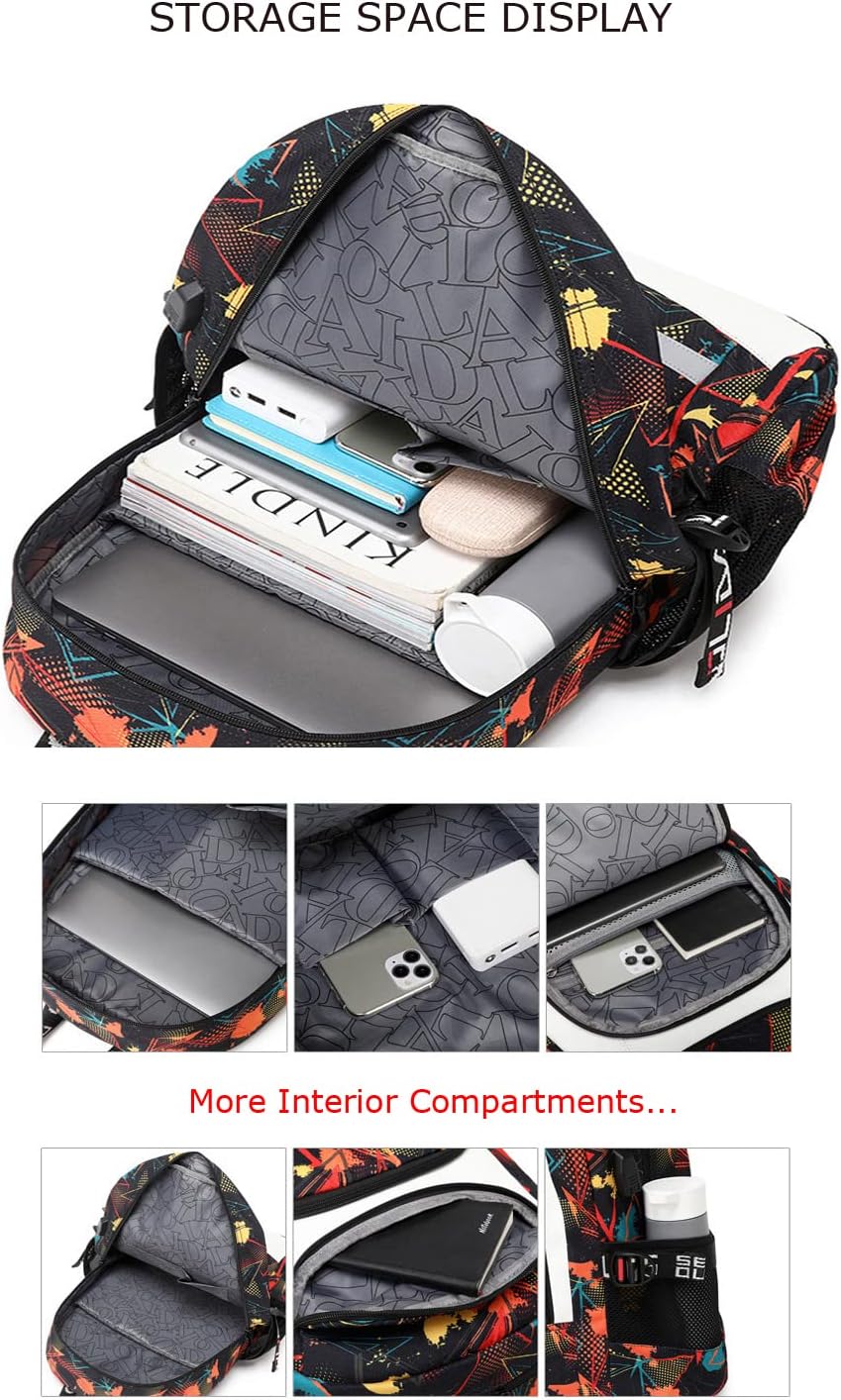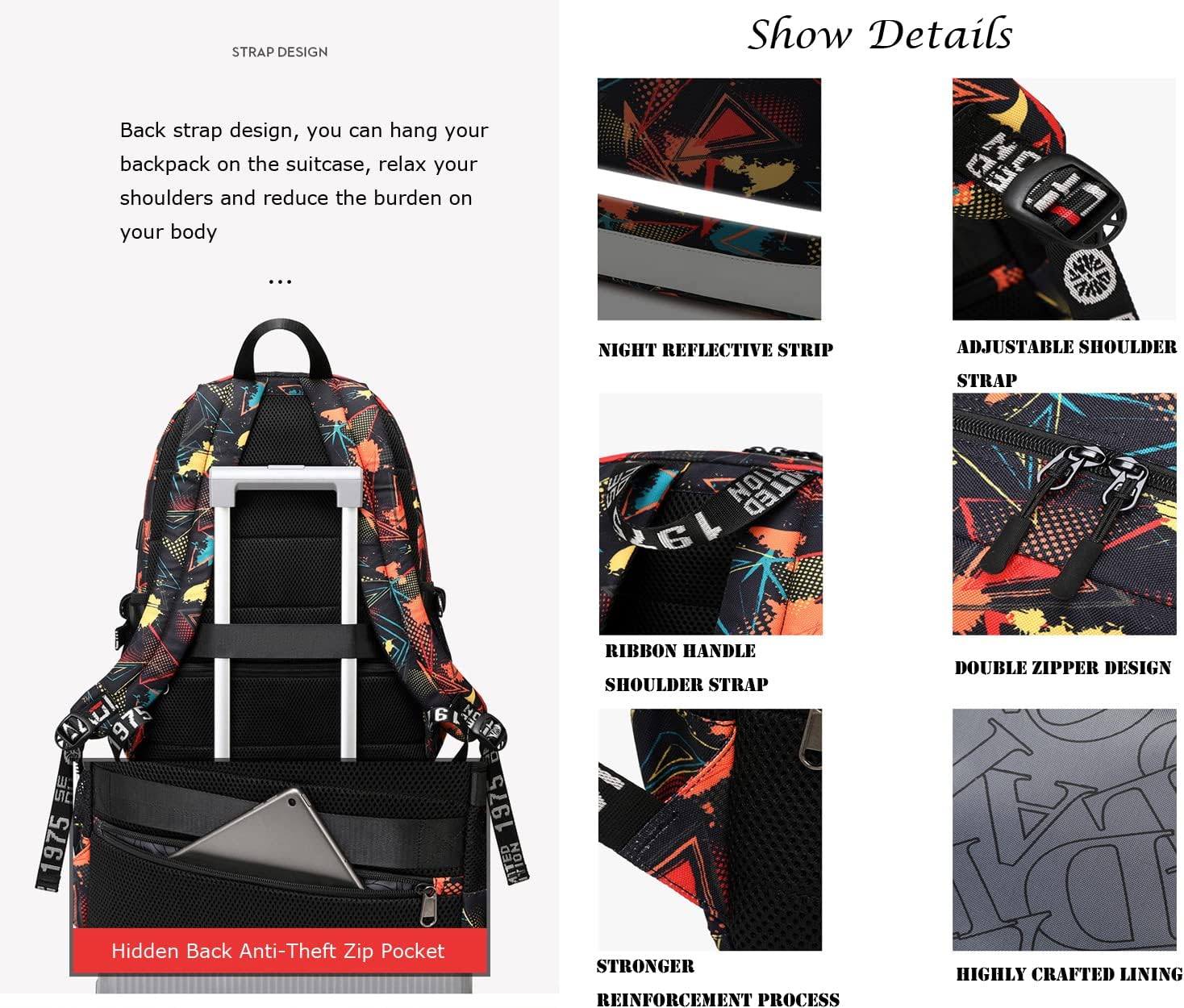 3.Multi-funtion COMPARTMENT: Backpack features multiple storage compartments and features for additional supplies and accessories as your laptop, iPhone, iPad, pen, keys, wallet, books, clothes, bottle, passport and more, And the exterior is equipped with a special interface for the charging line.