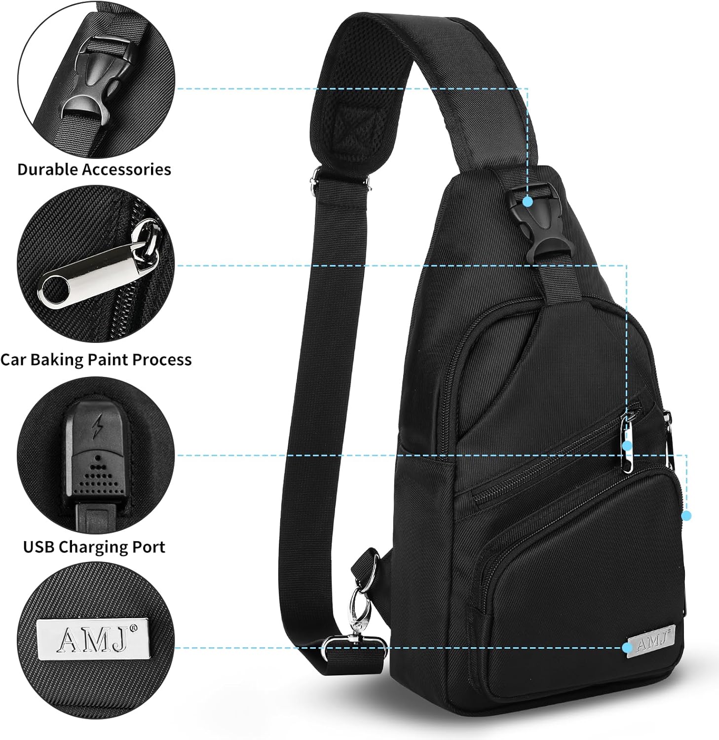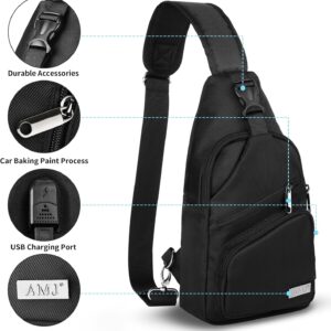 AMJ Crossbody Sling Bag Men Women, Casual Shoulder Backpack, Chest Daypack Satchel for Hiking Travel