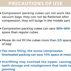 Easy to Trip: Using the compression packing cubes not only can utilize the limited space in suitcase to accommodate more essentials but also can categorize and organize your items so that you can find what you want whenever you need it