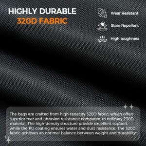 Premium 320D Fabric: Our bags are crafted from high-tenacity 320D fabric, offering superior tear and abrasion resistance. Its dense structure provides excellent support while achieving the a balance between weight and durability