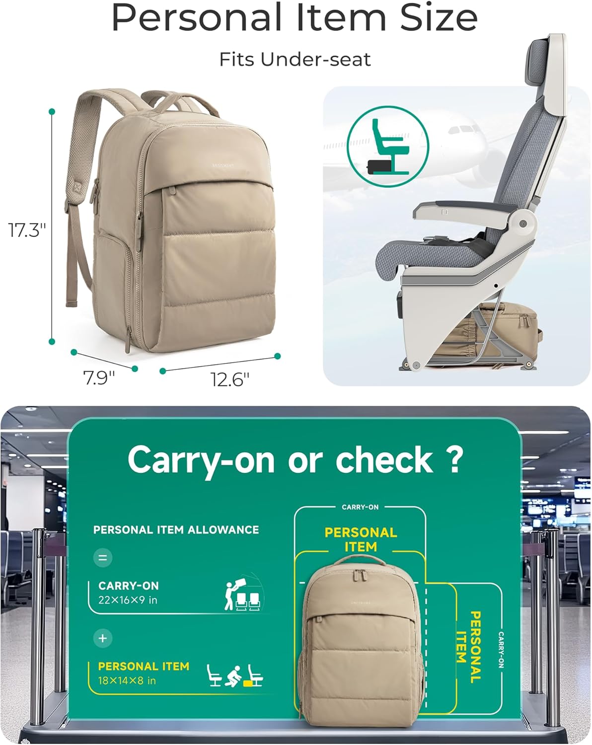 Ample Compartment: BAGSMART Travel Backpack provides generous room and diverse compartments, effortlessly segregate and store your 15.6″ laptop, books, supplies. Meets airline carry-on requirements. Dimensions:17.3×12.6×7.9 inches