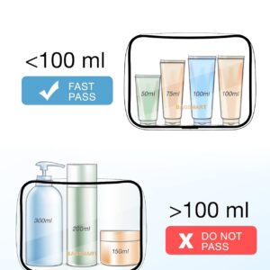 Carry-on Size: The travel toiletries bags two pack, with dimensions of 8.2 x 2 x 6 inches, strictly follow the TSA 3-1-1 liquids rule; With a TSA quart-size travel bag, you can easily and quickly pass through security screening at the airport, saving your time and reducing stress