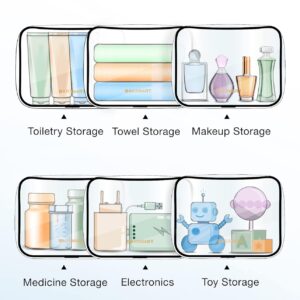 Transparent for Easy Access: The clear travel bag with a large top opening allows for easy access to what you need; The two pack is perfect for accommodating different storage needs; It is suitable for travel bottles, as well as for storing cosmetics, toiletries, toys, and small items