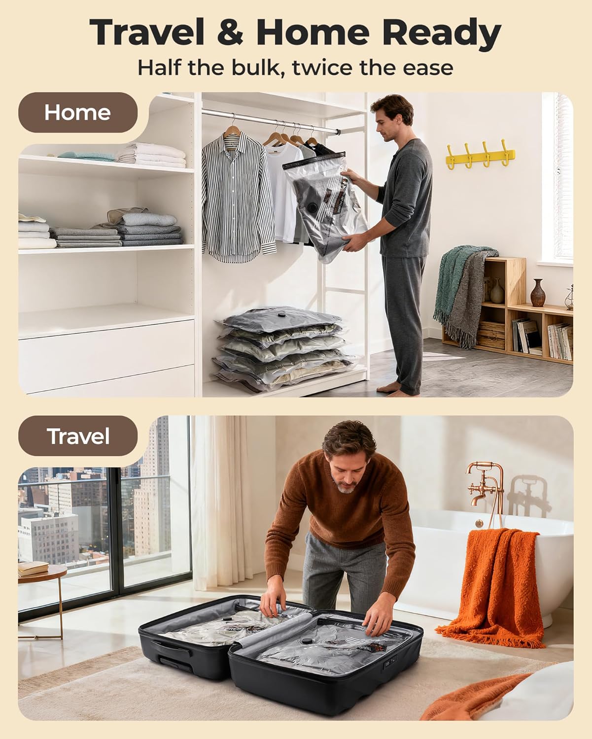 BAGSMART Rechargeable Wireless Pump Travel Storage Bags Set, Portable Space Saver Bags for Travel & Home, Vacuum Compression Seal Bag for Clothing- 18 combo bags