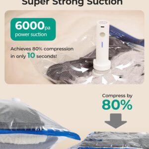6000Pa High-Speed Powerful Compression—Instantly achieves up to 70% space savings, compressing travel vacuum storage bags within 15 seconds. Effortlessly complete the full set in under 3 minutes for efficient organization.