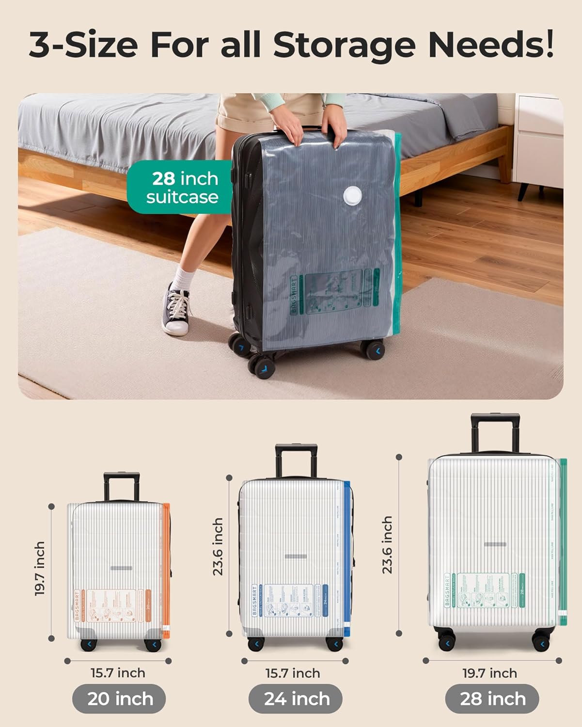 Thick, Tear-Resistant & Airtight: Made from reinforced PA+PE material, Bagsmart vacuum bags are built to last.The precision dual-seal mechanism effortlessly achieves an airtight seal, providing lasting protection.