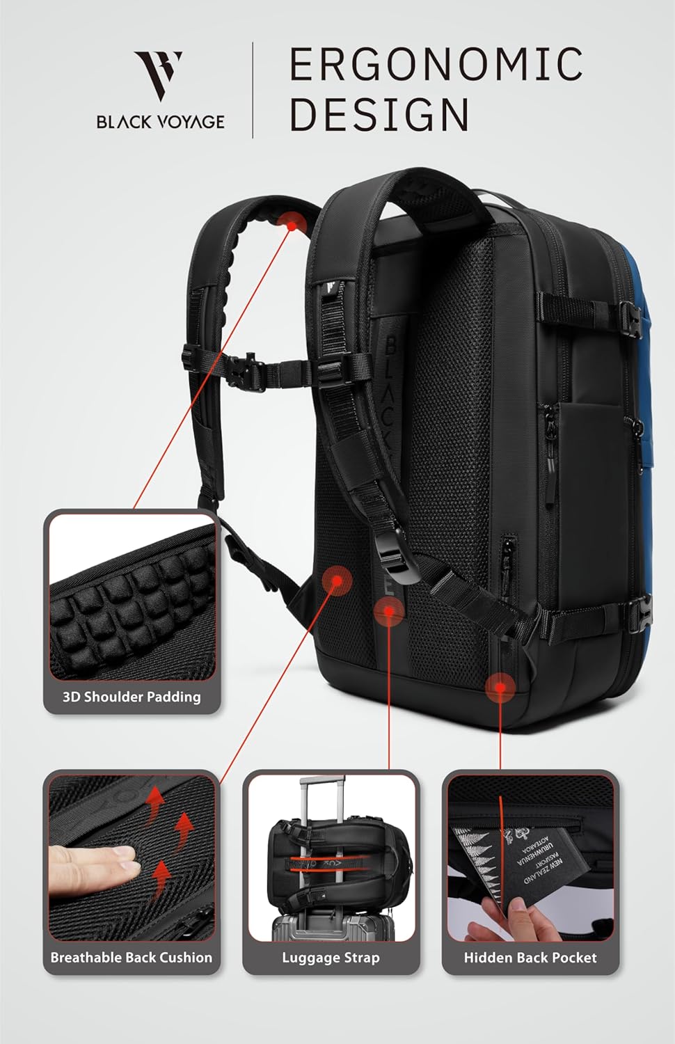 BlackVoyage Vortex Vacuum Seal Travel Backpack 60L Expandable Air Compression System Water Resistant TSA Lock Carry-On Suitcase Luggage Blue AERO – Vacuum Pump Included