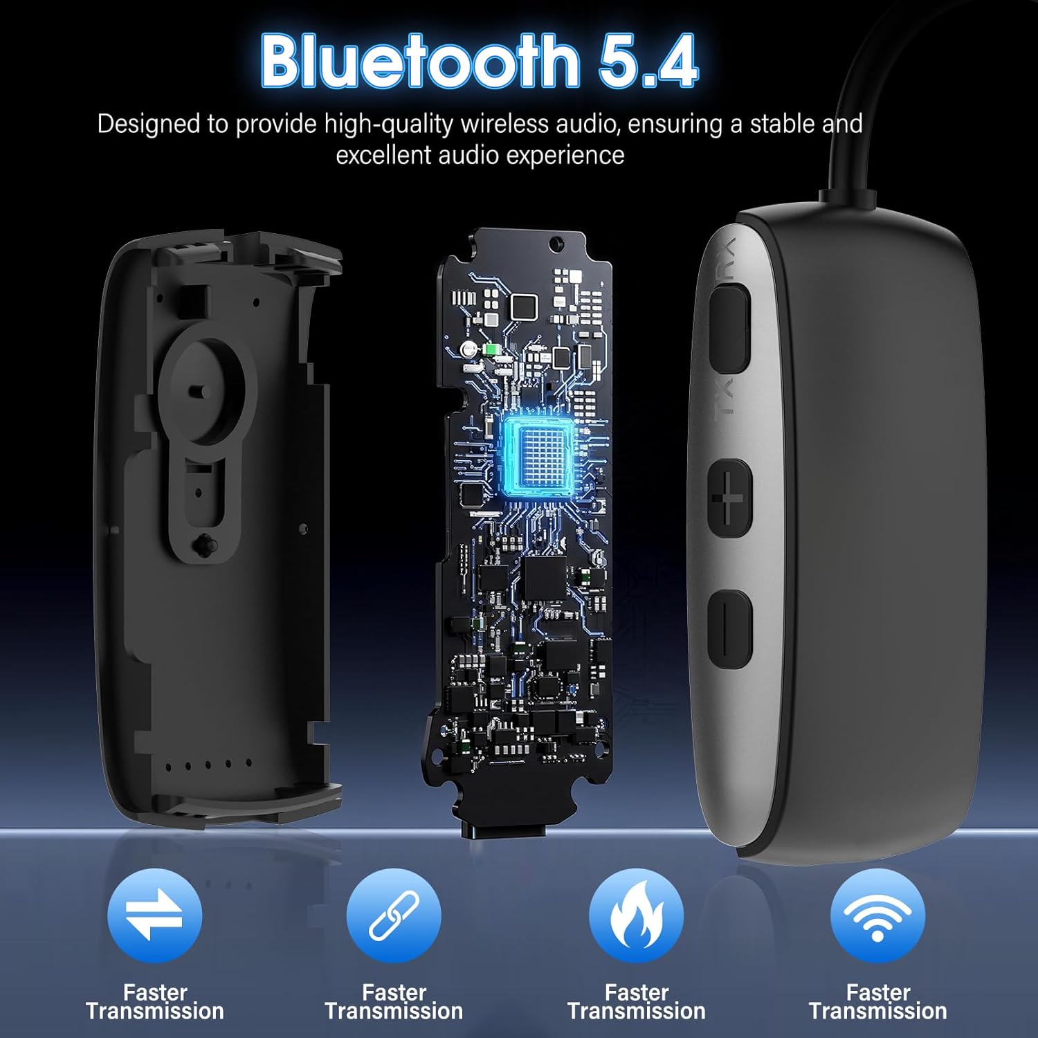 Upgraded Bluetooth 5.4: Equipped with the Bluetooth 5.4 chipset, along with aptX Adaptive and aptX Low Latency, it delivers stable, high-quality sound and smooth A/V synchronization. It works as a reliable Bluetooth transmitter-receiver and Bluetooth audio transmitter, perfect for movies and games.