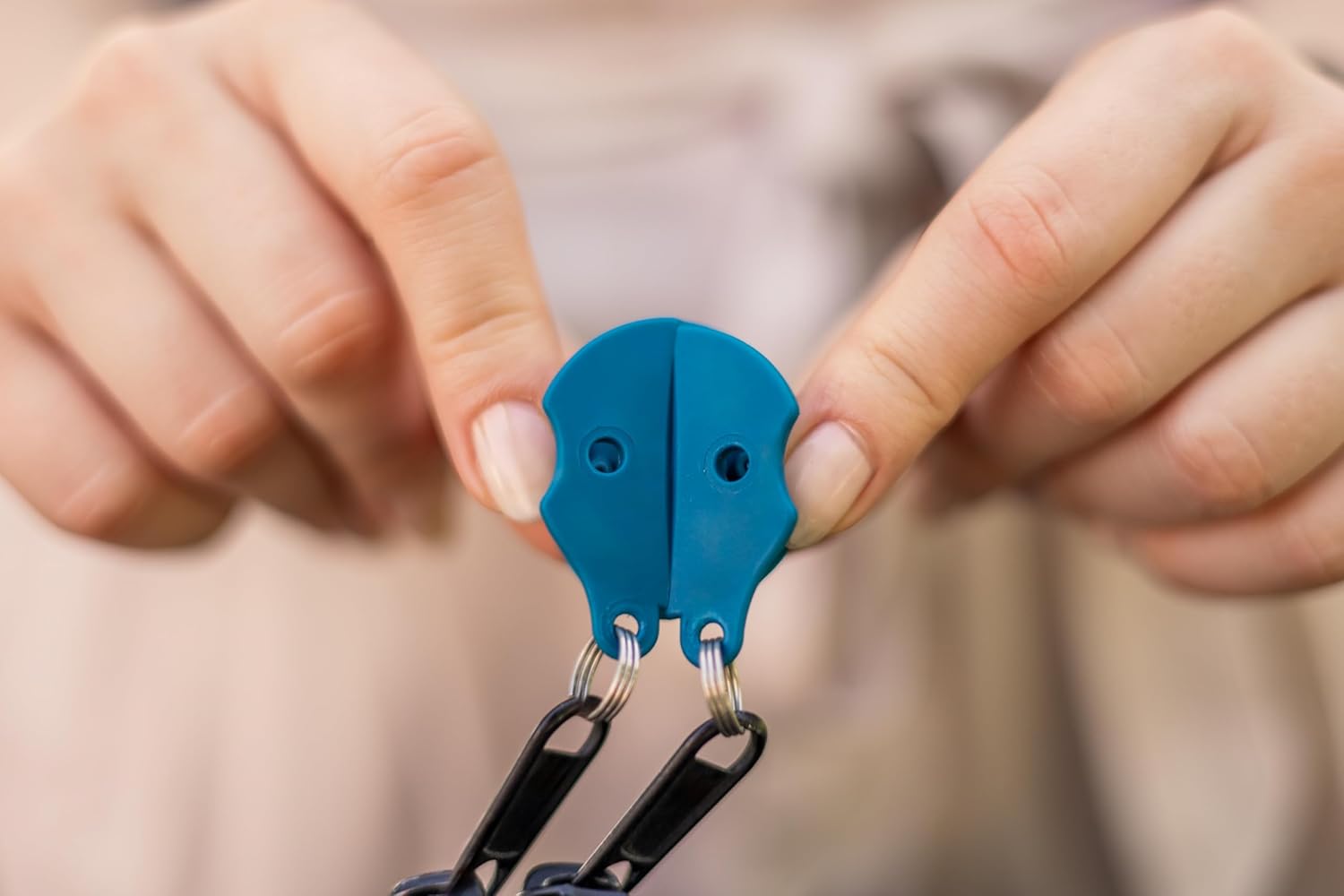 The Zipper Clip is designed to keep two zipper tabs closed securely to deter thieves and strangers from opening your bag. Clasp the 2 tabs together to create a safe, secure lock. Untwist to open!