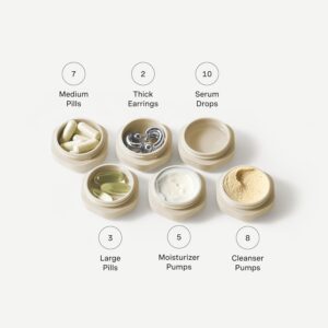PATENTED MAGNETIC DESIGN – Designed for seamless storage, our travel capsules feature a magnetic design that connects each container vertically or horizontally. They include magnetic labels that seamlessly swap between Small, Medium, and Large capsules.