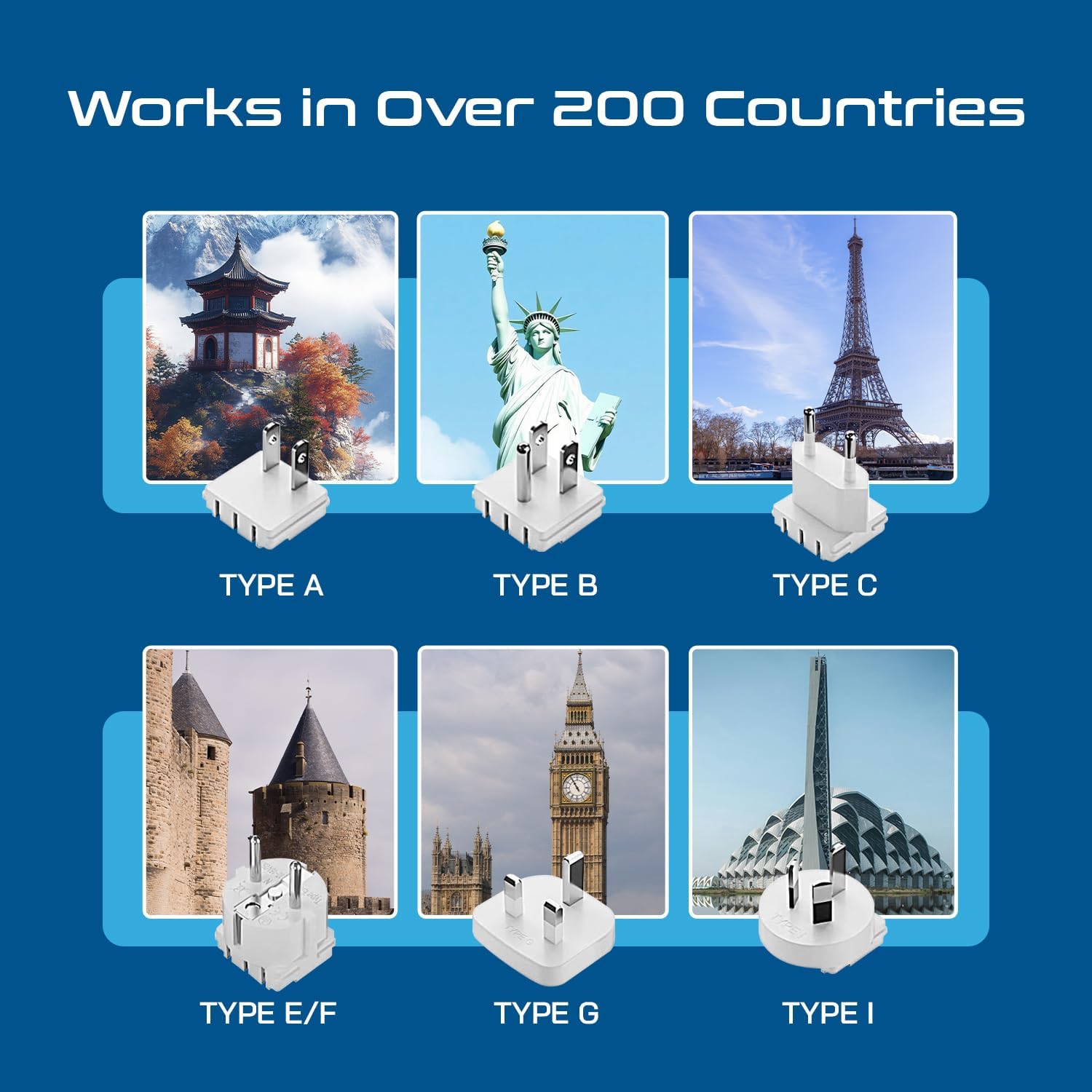 International Power Adapter:Equipped with 2 USA outlets, 1x USB-A (3A), 1x USB-C and 1x PD 35W USB-C and USB-C cable-Perfect for travel – use with cell phones, laptops & other devices anywhere in the world – Few Exceptions Listed below.