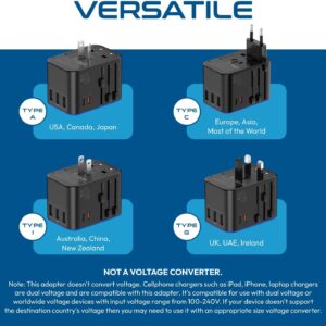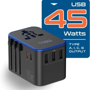 Ceptics Universal Travel Adapter, 45W International Power Adapter with PD & QC 3.0 Dual USB-C, 3 USB Travel Adapter Worldwide, Type I C G A Outlets 110V 220V A/C – EU Euro US UK (11-KU)