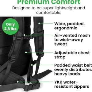 Built for premium comfort: Wide, padded, ergonomic shoulder straps to evenly distribute heavy loads, with adjustable chest and waist strap. Durable: Built Tough with double stitching and a lifetime guarantee!