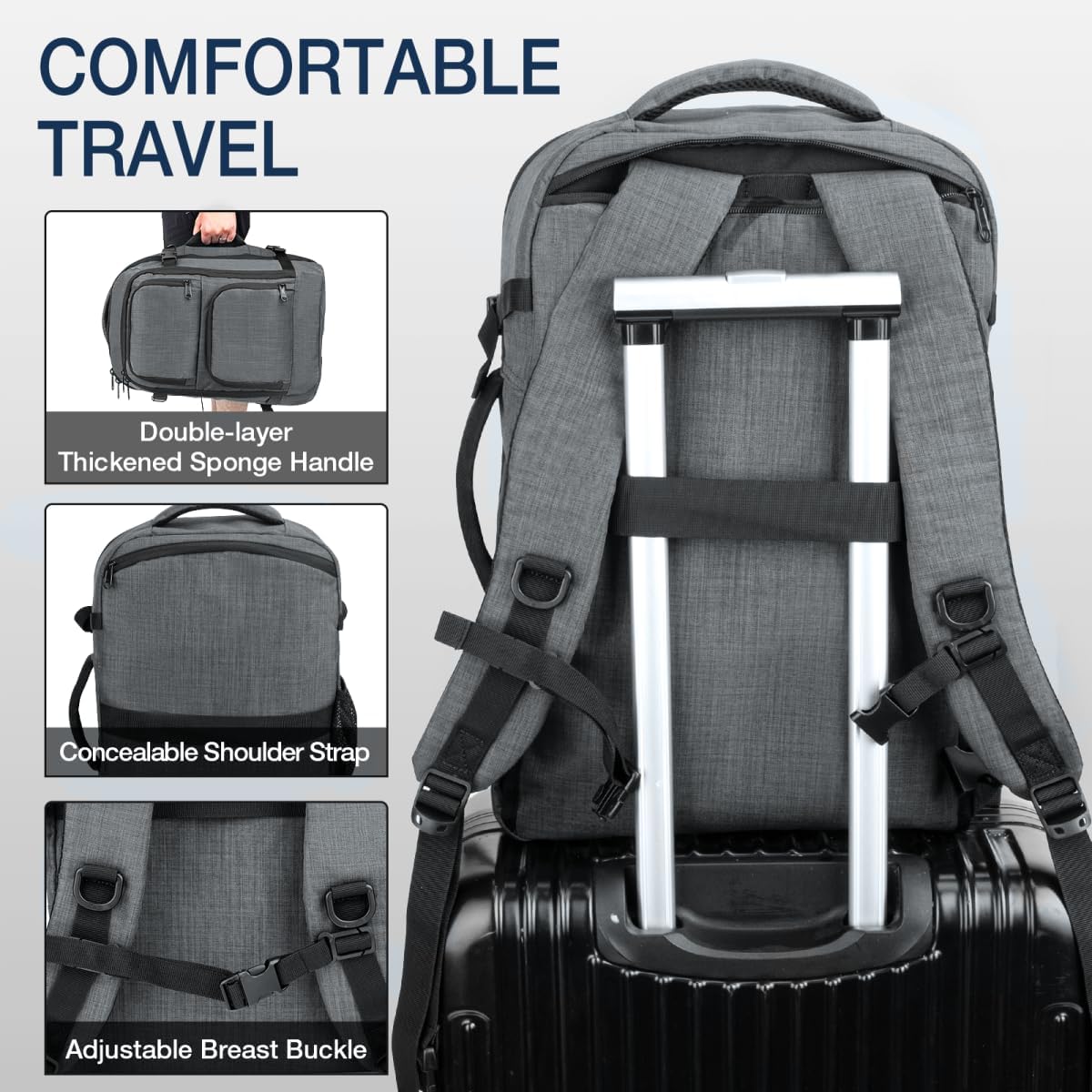 ✈Comfort and Portability: Breathable and comfortable shoulder straps and chest strap (adjustable up and down on the chest) can reduce the pressure on the shoulders; Luggage straps can secure the backpack to your suitcase/luggage for easy carrying. Thickened carrying handles on the top and sides of the suitcase backpack are suitable for long time carrying use.