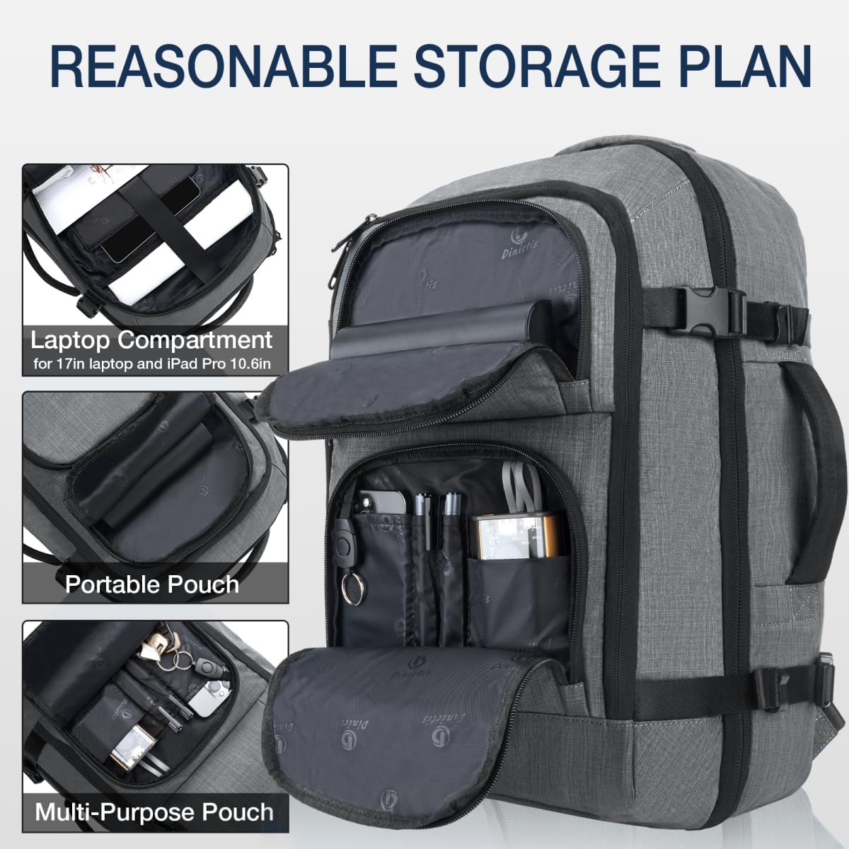 ✈Well-Partitioned Storage:Two front pockets, side pockets and a 17-inch laptop pocket with foam padding, and a main compartment with mesh pockets and luggage compression straps to keep your travel gear organized and easier to find.