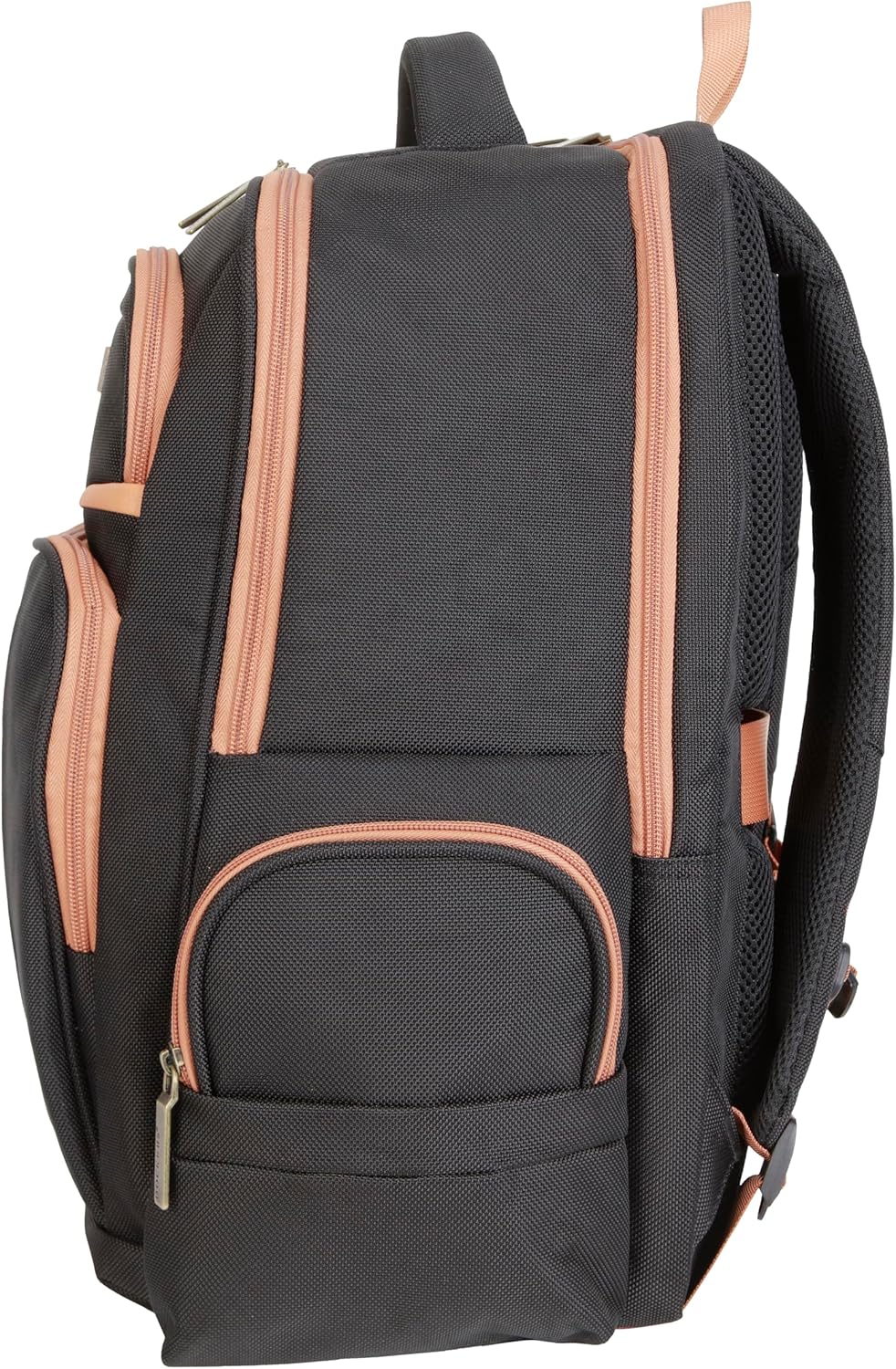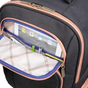 Four separate spacious compartments provide plenty of room to hold your important belongings. The front exterior consists of an easy-access zipper accessory section with a padded tablet pocket. The center section includes a full-length zipper pocket and two smaller zippered tech/accessory pockets.