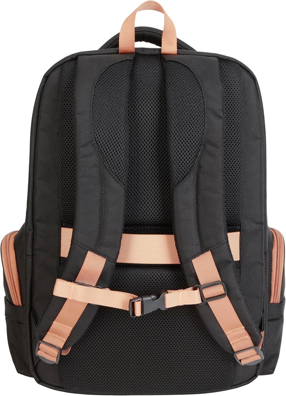 Rear exterior features extra padded backpack straps for ultimate comfort. Rear also features a trolley tunnel to fit over most upright trolley handles for hands-free carrying.