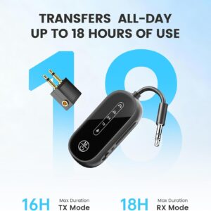 ✈️【Dual Pairing & Shared Audio Experience】 In TX mode, simultaneously connect two Bluetooth headphones for seamless audio sharing—perfect for couples or friends watching movies together. In RX mode, Support two smartphones to connect non-Bluetooth devices. An essential travel gadget for flying with a built-in nickel-plated airplane adapter.