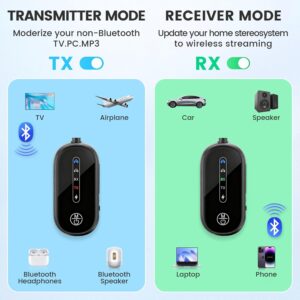 📱【Intuitive Display】 Features a user-friendly screen that clearly shows the current connection status and active operating mode (TX/RX). It also displays the charging status, ensuring effortless operation and management.