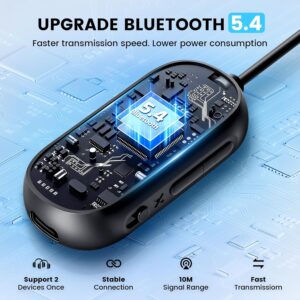 ✈️【Bluetooth 5.4 Chip】 Advanced Bluetooth 5.4 ensures stable, low-latency audio transmission with a reliable range of up to 35 ft. Benefiting from low-power technology, a single charge delivers an extended 18-hour battery life!