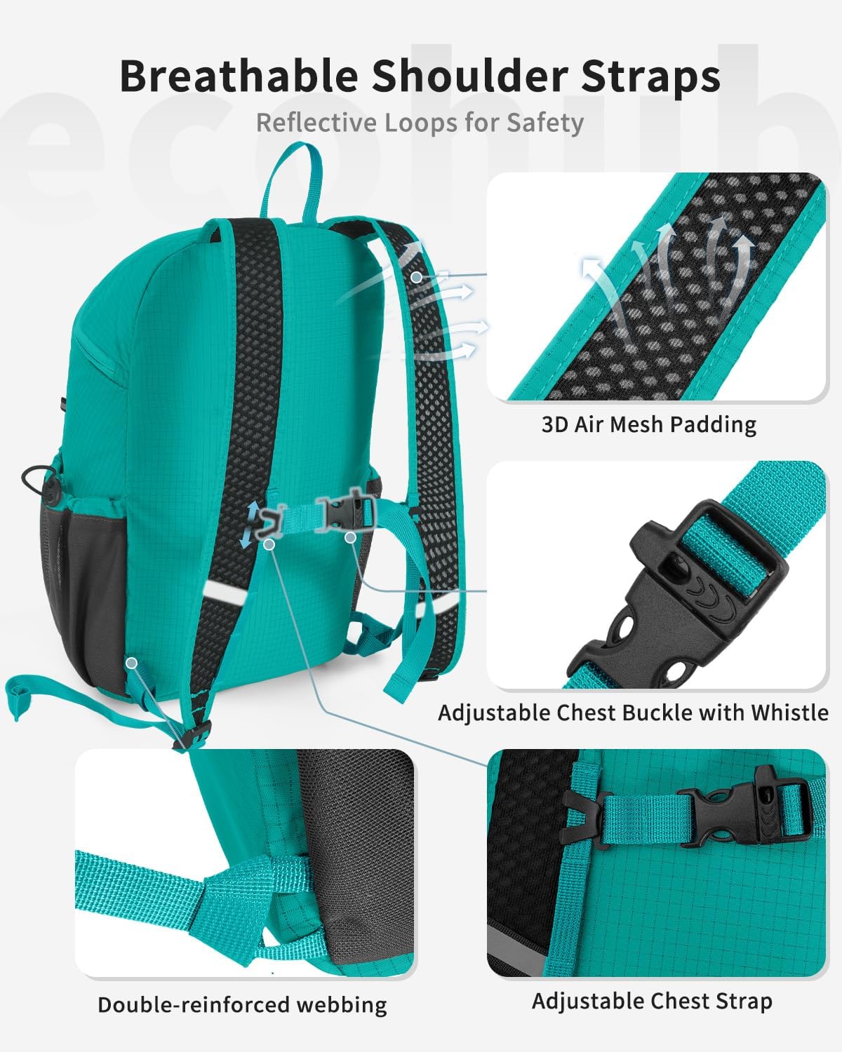【Durable, Breathable & Safety-Focused Design】 Made from 210D ripstop nylon, water-resistant. Breathable mesh shoulder straps, adjustable chest strap with whistle, and multiple reflective webbing points for improved visibility during night walking or cycling.