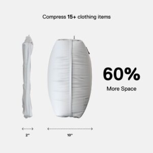 NO-COMPROMISE COMPRESSION: Advanced vacuum seal clothing bags technology shrinks even the bulkiest sweaters and coats in seconds without causing wrinkles, creases, or fabric damage. Pull the airtight zipper all the way to the top to ensure no air can escape. Your clothes emerge from every trip looking fresh and ready to wear while maximizing every precious inch of your suitcase organizer space for essentials, ideal for compression travel backpack adventures and airplane travel essentials.