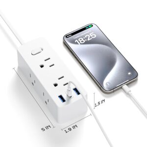 【Overload & Surge Protection】 The built-in circuit breaker cuts the power off when it exceeds rated power to prevent overcurrent and overheating. And power strip with surge protector protects your electronic devices against lightning strike.