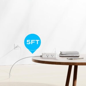 【Multi-Side Widely Spaced Outlet】 The Multi-Side design makes full use of space, allowing a mini-sized power strip to provide 6 wide-spaced outlets without blocking each other.