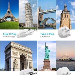【Universal Travel Adapter】It includes 4 types of plug adapters. Type C for most of Europe, Type E/F for France & Germany, Type G for UK & Ireland, Type A/I for USA & Australia.