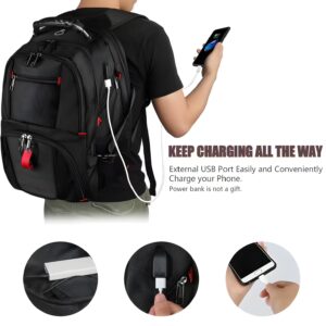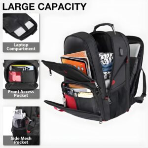 Extra Large Travel Laptop Backpack, 13.2 Gallon Airline Approved Carry On Backpack with USB Charging Port, Fits 17 Inch Laptop, Multi-Pocket Business Work Backpack for Men and Women, Black