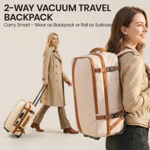 Security Upgrade: The travel backpack with vacuum system offers peace of mind with a TSA double-headed combo lock that secures both laptop and main compartments—protecting valuables while ensuring quick security passage, preventing baggage detention from locks, and saving time. The anti-theft zippers effectively resist prying. Multiple security layers ensure your vacuum backpack travel keeps your business trip worry-free, letting you focus solely on your journey