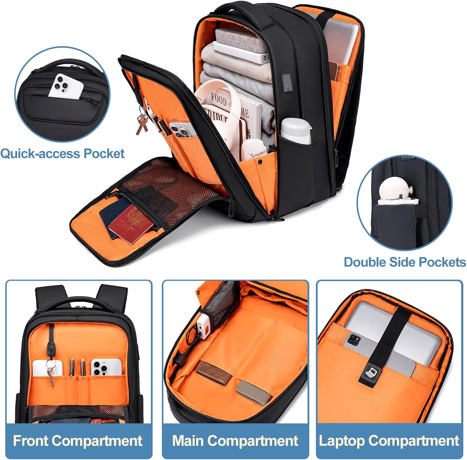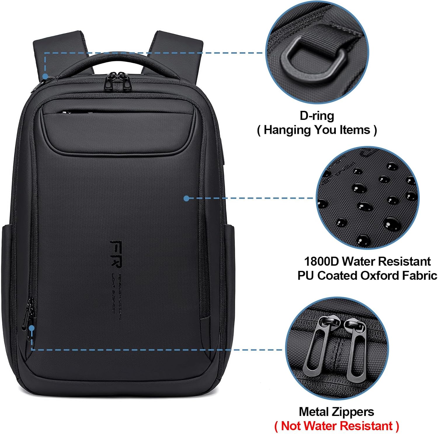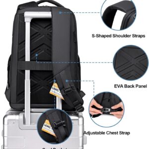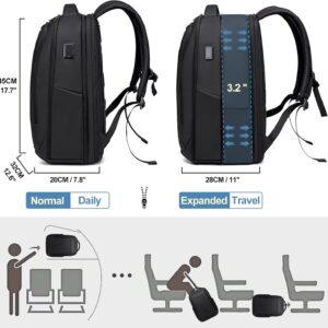 FENRUIEN Expandable Travel Backpack 15.6 Inch, Water Resistant Backpack with USB Charging Port, Black Laptop Bag for Work/Commuter/College