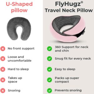 Ultimate Travel Comfort & Proven Neck Support- FlyHugz neck pillow is designed with a unique shape to provide top-level comfort and neck support. The internal structure keeps your head and neck upright while you nap, preventing aches, strains, and neck pain. It’s the best travel pillow for long flights, perfect for airplanes, trains, and cars. With soft yet firm chin support, you’ll say goodbye to snoring and mouth-opening moments.