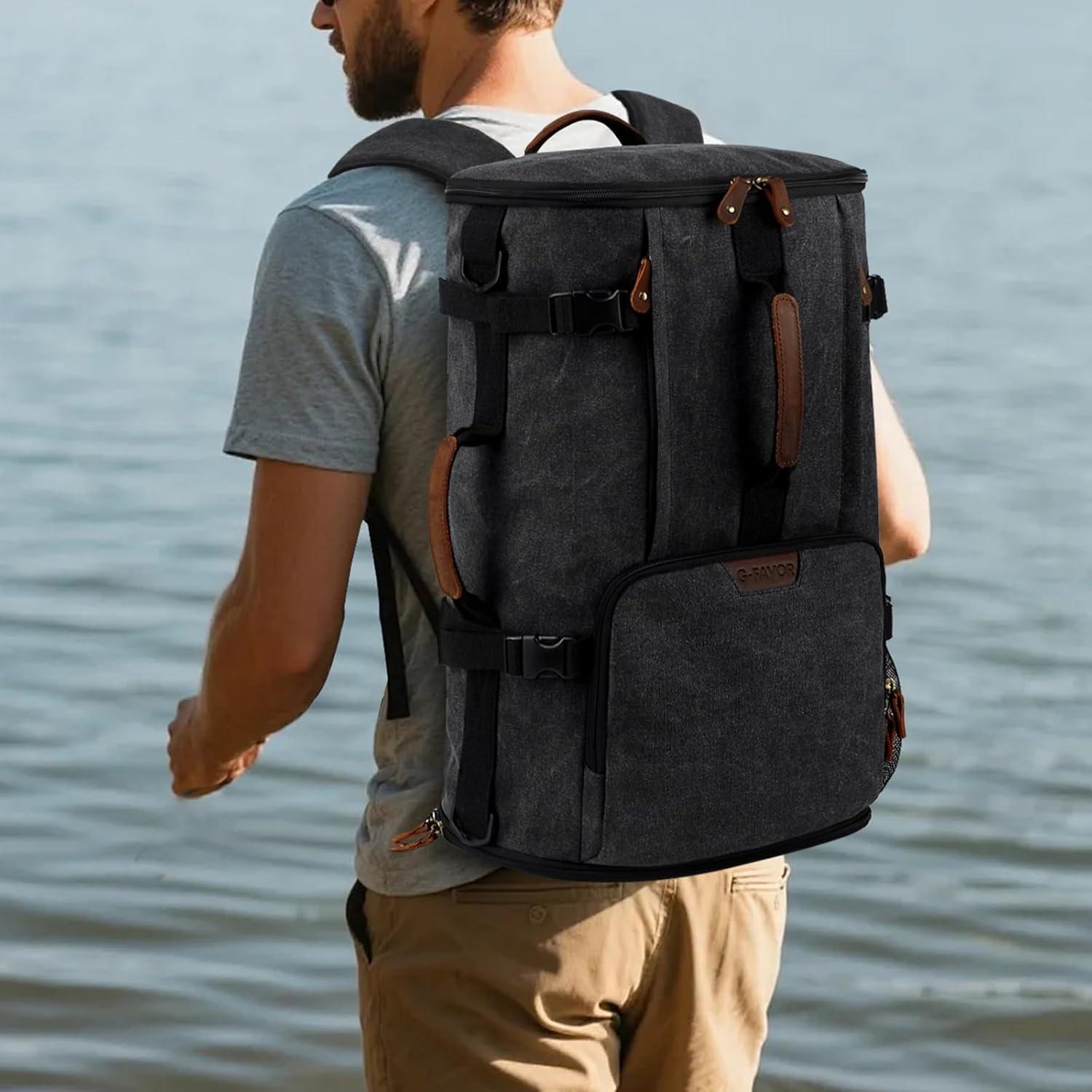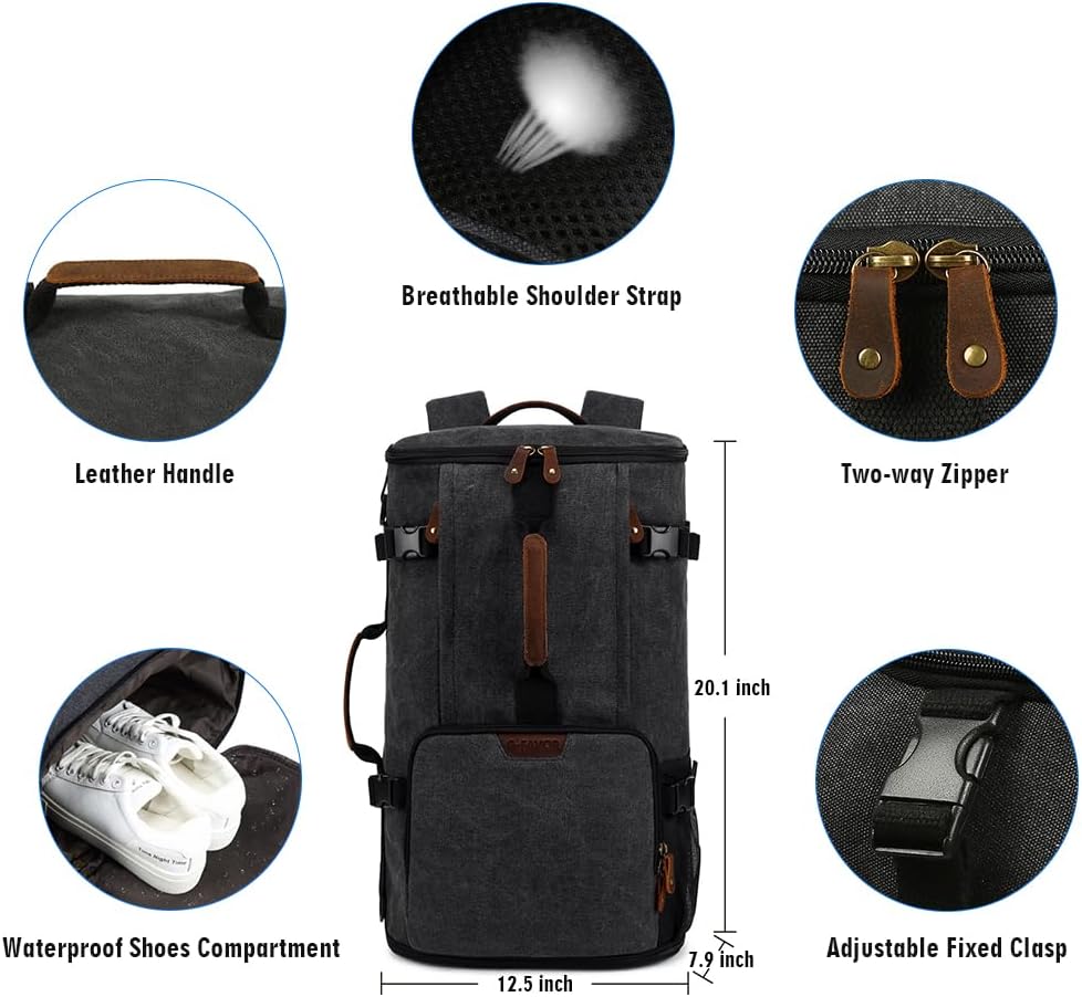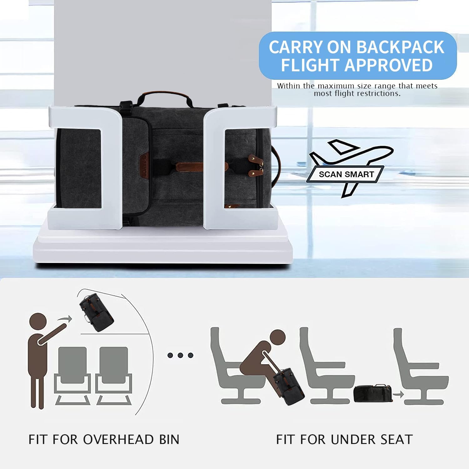 G-FAVOR Canvas Travel Backpack for Men, 40L Large Airline Approved Carry On Backpack Fits 17.3” Laptop, Convertible to Shoulder Bag & Duffle Bag for Travel and Work