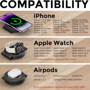 HICOBER 3 in 1 Charging Station for Multiple Apple Devices, Compatible with iPhone 17/16/15/14/13, Apple Watch & AirPods, Foldable Fast Wireless Charger & Travel Charger for Home/Office/Trips