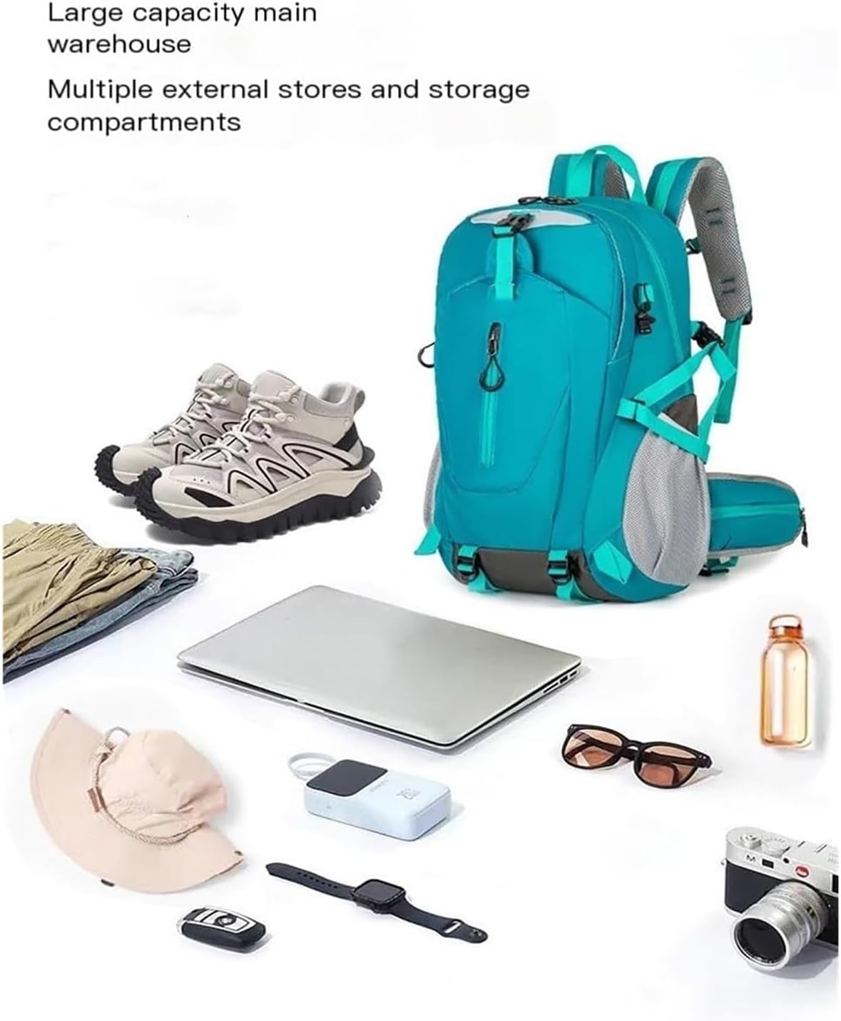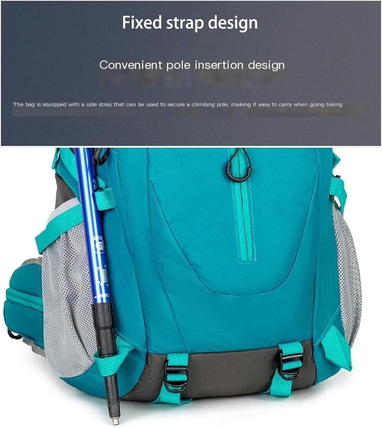 【Trekking Pole Attachment Points】 Side compression straps provide attachment points for trekking poles or other gear, allowing convenient access during activities