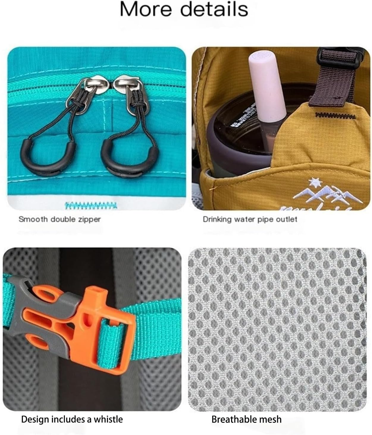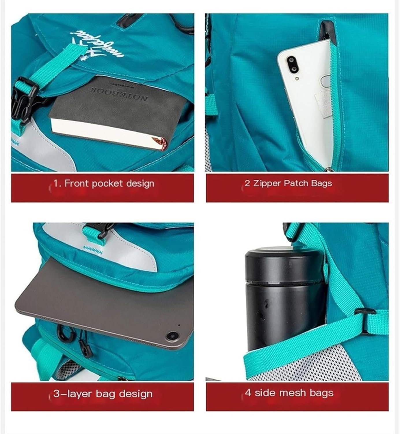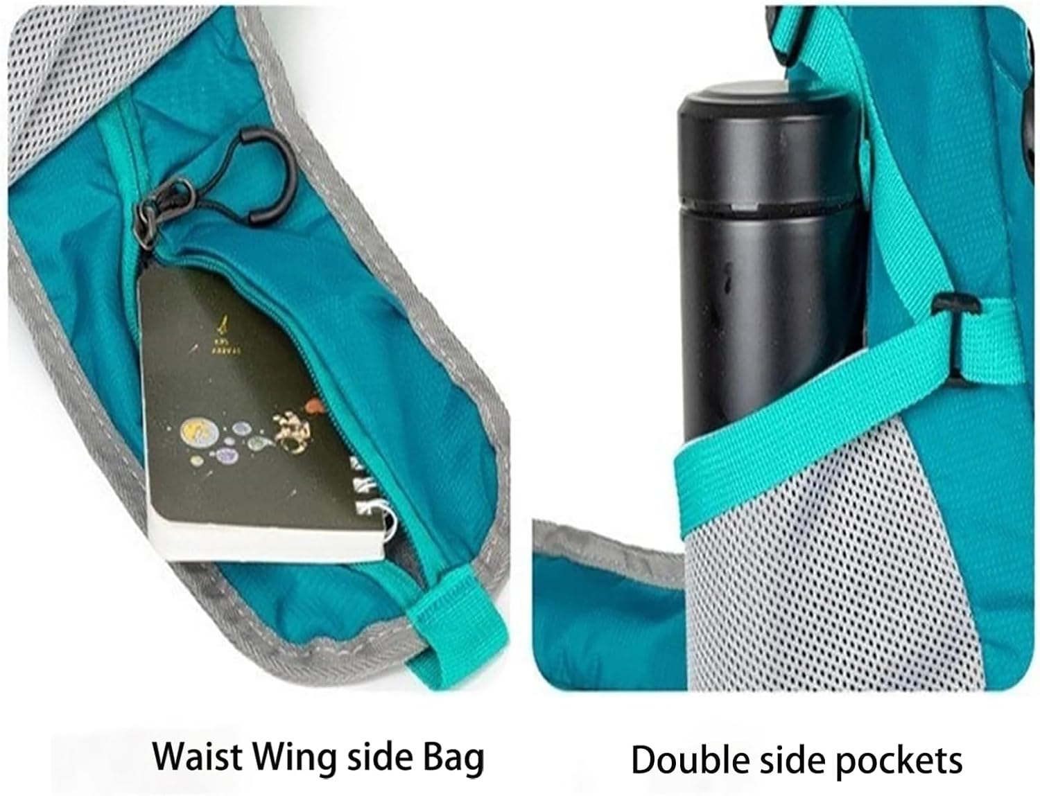 Water Bottle Holders: Side mesh pockets accommodate standard size bottles
