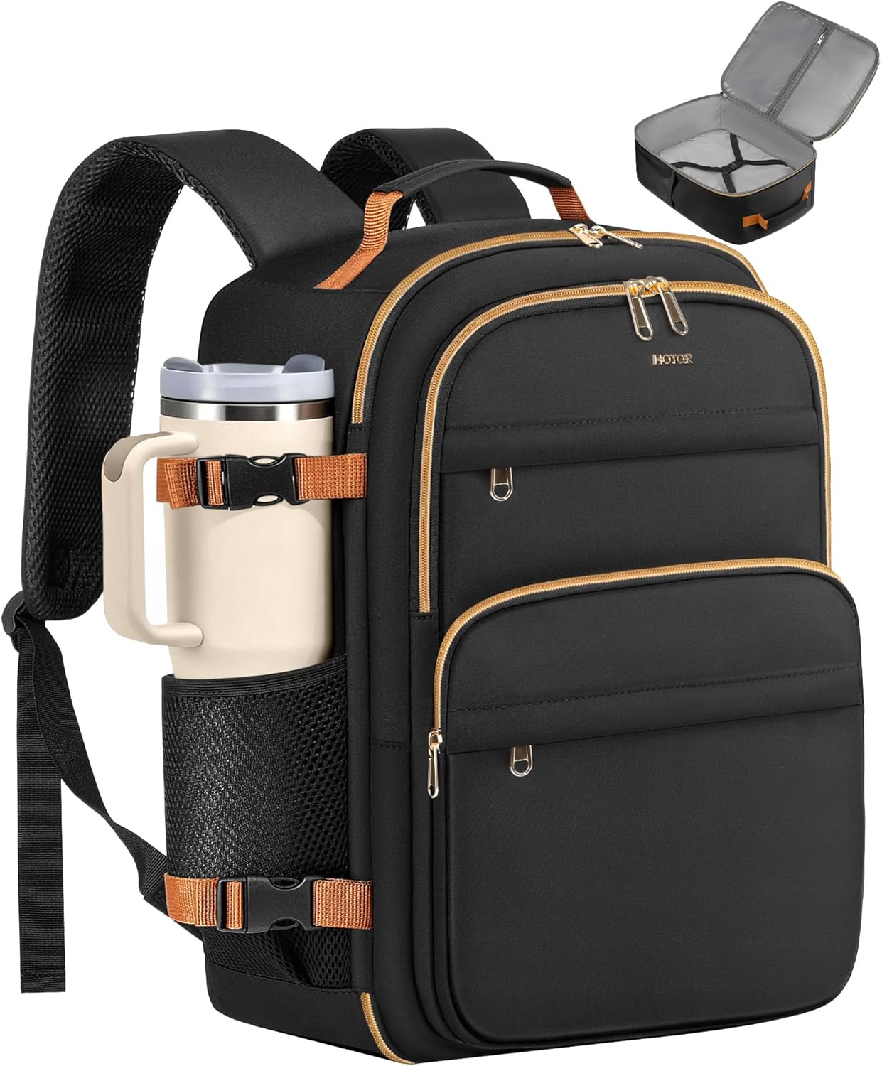 180° LAY-FLAT INTERIOR: This laptop backpack for women opens fully at 180°, providing a suitcase-style packing experience that makes organizing faster and easier. The waterproof pocket and internal luggage straps keep clothes and essentials secure during travel.