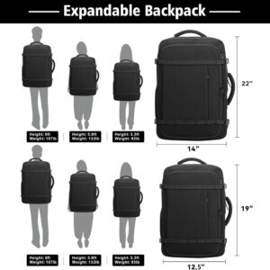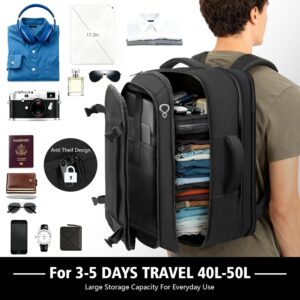1️⃣ Expandable 40–50L Carry On Space:Compact 19 x 12.5 x 5.5 inches size for everyday carry and travel then expands to 19 x 12.5 x 8.5 inches to deliver 40–50L capacity for 3–5 day trips weekend travel and flights padded sleeve fits a 17.3 inch slim laptop,14inch pad, plus organizer pockets for clothes shoes tech accessories and chargers lightweight 2.4 lb travel backpack for easier airport travel and daily commuting