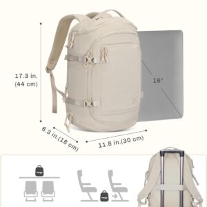 Flight-Approved Carry-On, with dimensions of 17.3 x 11.8 x 6.3 in. (44 x 30 x 16 cm), this travel backpack is flight-approved as a carry on bag. It fits in overhead bins or under seats, functioning as a personal item travel bag. The 4 exterior compression straps help stabilize the load during movement, and luggage pass-through streamlines travel mobility.