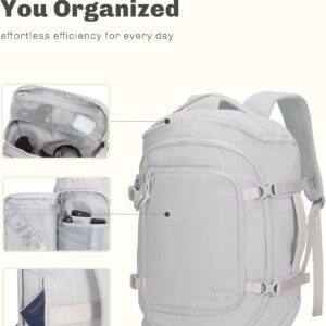 Flight-Approved Carry-On, with dimensions of 17.3 x 11.8 x 6.3 in. (44 x 30 x 16 cm), this travel backpack is flight-approved as a carry on bag. It fits in overhead bins or under seats, functioning as a personal item travel bag. The 4 exterior compression straps help stabilize the load during movement, and luggage pass-through streamlines travel mobility.